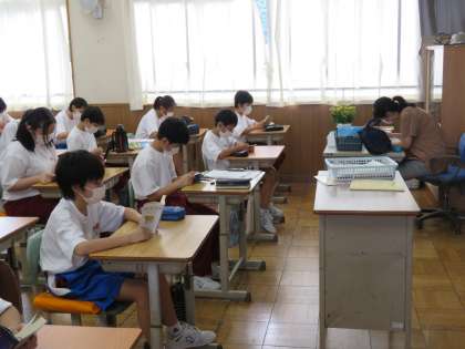 1C,1Dの朝読書の様子です。現在8時0分ですが、すでに熱中症注意報です。