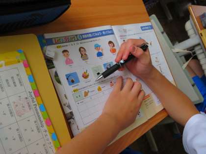 Let's start 4 です。英語を聞いてみて、使ってみようです。小学校で英語の学習をしてきているので、聞く話すことは、中学校へもつながっていきます。