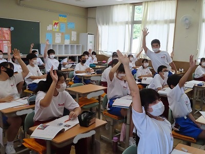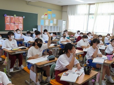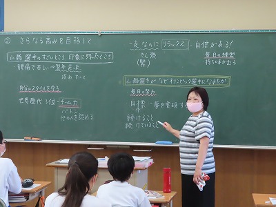 1B:始めに山縣選手に共感したところを考えていきました。みんな積極的に自分の考えを発表しています。