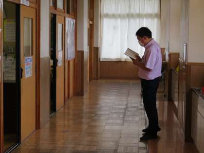 1Dの朝読書の様子です。1C担任の先生は廊下で読書を楽しんでいました。隙間読書の時間です。