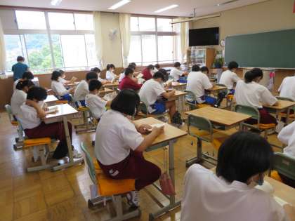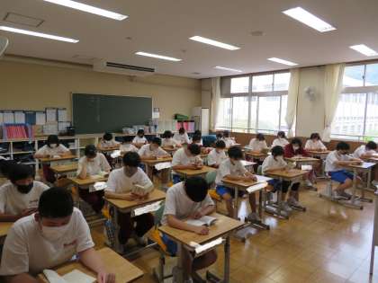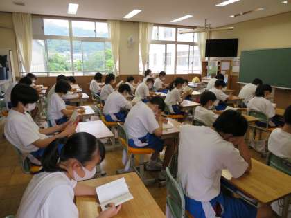 2D,2Eの朝読書の様子です。自宅から学校の登校を「動」、読書の時間し「静」とこの二つの時間が一日のスタートには大切ですね。