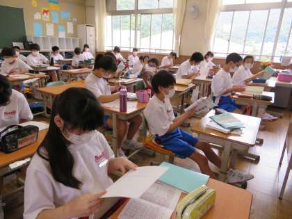 まずは国語の漢字の学習です。小学校6年間で学年別幹事配当表に示されている漢字1026字はみんな書けますか。しっかり小学校の学習の上に中学校の学びがあります。文や文章の中でも使えるようにしましょう。