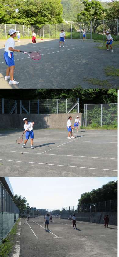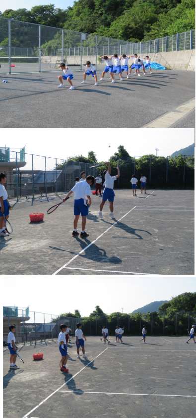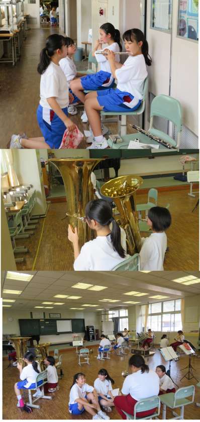 吹奏楽部、男女のソフトテニス部の活動の様子です。各部、下級生の面倒も見ながら頑張っています。