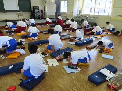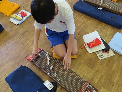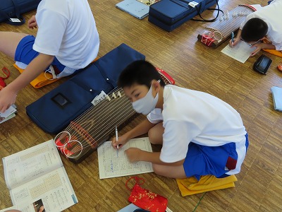 1B音:箏を弾いています。最後に振り返りをして、授業の確認を行っています。