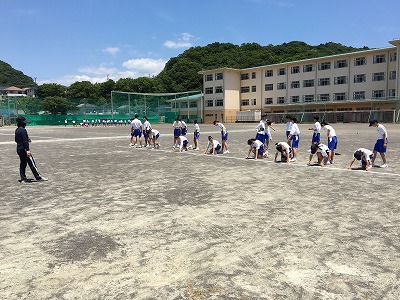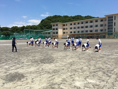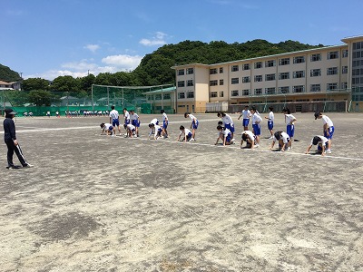 2C体:50m走の練習です。始めに、スタート練習を行っていました。