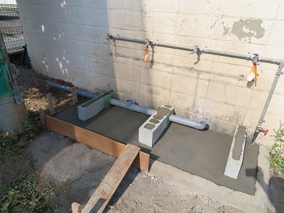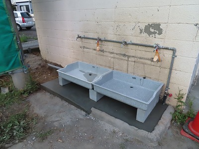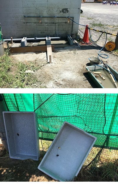グラウンド北水道が完成しました。少し高くなっているため、砂が入りづらくなっています。また、ほどよい高さにして、足を洗えるようにしています。コロナ対策も含めて、これからしっかりと手洗い等が行えます。大切に使ってください。