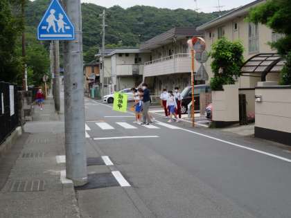 先生方も登校の見守り、交通安全指導ありがとうございます。学校の南側の通りは交通量も多いので、十分気をつけて登校してください。