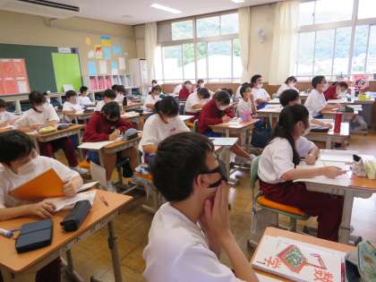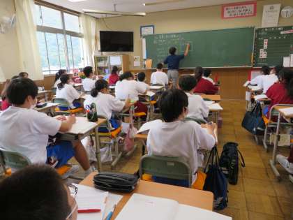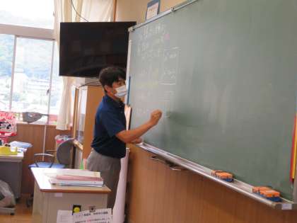 指数の学習です。累乗はどのようなところで使用されているでしょうか。の質問に子どもたちは積極的に答えていました。