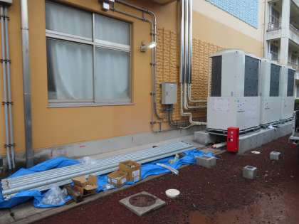 エアコン工事も終わりに近づいてきました。今日は、ガスの工事と最終点検です。16日(木)の期末テストの時には、試運転ができ、エアコンが効いた中でテストを実施できそうです。もう少しの辛抱です。