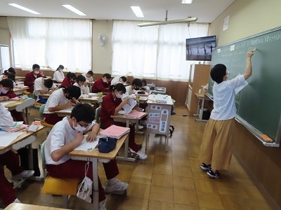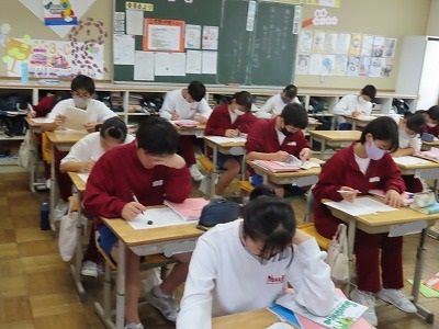 3C英語:中間テストに向けて、真剣に今までの復習を行っています。聞こえてくるのは、鉛筆の音、そして、英語の曲だけです。