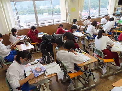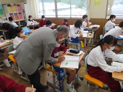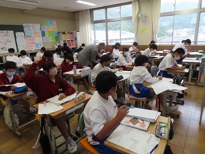 1C数学:テストに向けて復習を行っています。教科担任だけでなく、支援員の先生の支援やお互いに教え合うことによって、理解を深めていました。