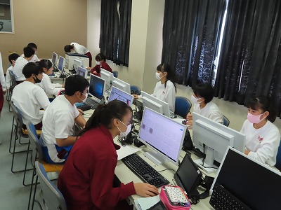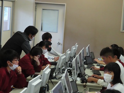 3B言語読解:「沼津の人口減少をとめるプラン」を考え、プレゼンソフトにまとめています。インターネットから情報を取捨選択して得て、それらを相手にわかりやすく伝えるためにはどうしたらよいか考えながら取り組んでいます。