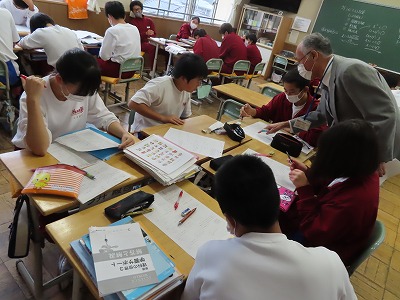3D数学:今までの授業の復習を行っています。支援員の先生も解説をしてくださっています。