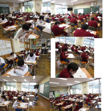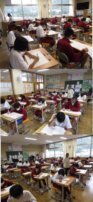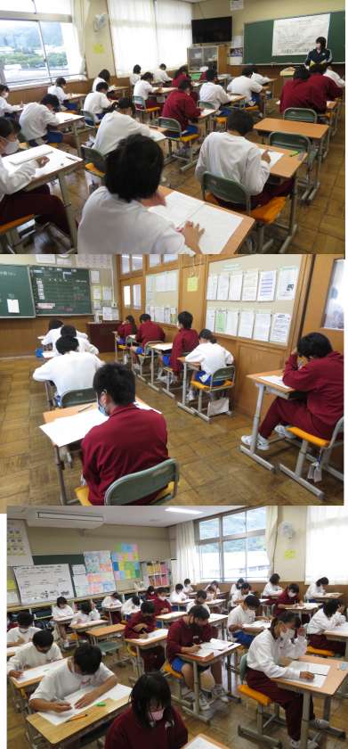 1時間目は英語です。リスニングのテストから始まりました。みんな頑張ってください。