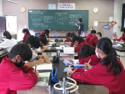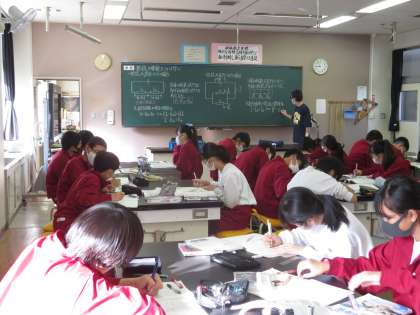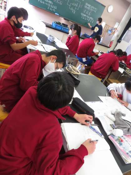 抵抗の接続についての学習です。二つの抵抗を直列、並列につないだ場合について、その合成抵抗についても学んでいます。大切なことをしっかりノートにまとめています。