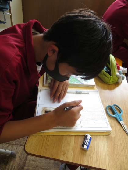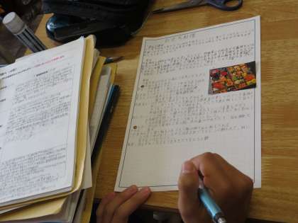 日本の郷土料理について調べたことをレポートにまとめています。おせちやおにぎりなどもあります。日本食は世界でも注目されていますね。レポートの完成が楽しみです。