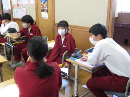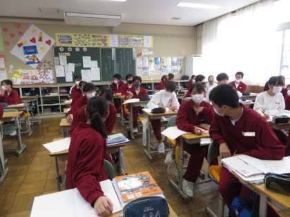 公民で「地方財政の仕組みと課題」の学習です。先生から「身近に、どんな公共のサービスがありますか。」と質問が、、高校生までの医療費、教科書の無償給与などなど、身近な公共のサービスを具体的に発表しています。