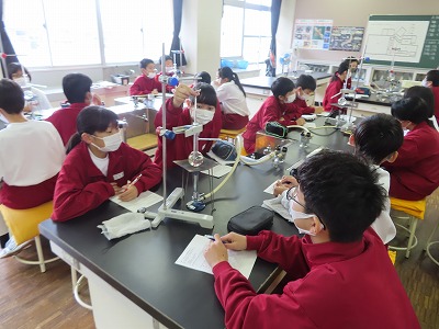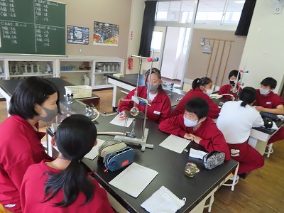 1D理科:「水を加熱したときの温度変化」を調べています。温度と水の状態に着目しながら、実験を進めていました。どんな発見があるのでしょうか。
