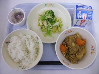 ・ご飯・牛乳・肉じゃが・エリンギと野菜のソテー・納豆