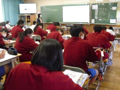社会です。 ICTを駆使した授業でした。日清戦争を学習しました。