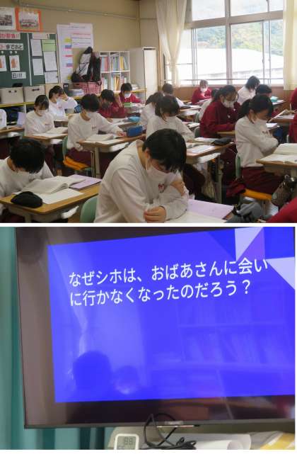 小さな手紙 なぜシホは、おばあさんに会いに行かなくなったのだろうか。課題を明確にし音読をしています。