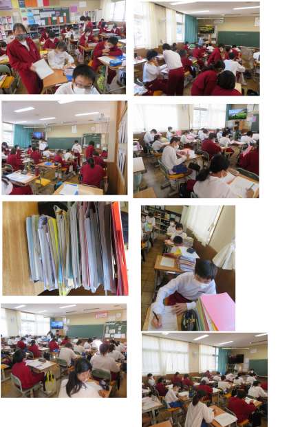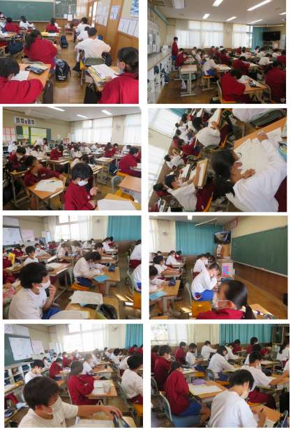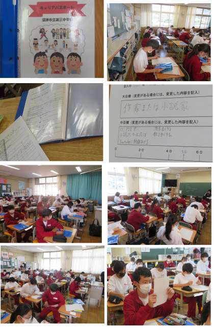 ○全校で6時間目は学活です。各学年大きな学年行事が終了しました。まずは、キャリアパスポートへの記入をし、期末テストの試験範囲を配りました。目標を決め、テスト計画を記入していきます。教科書等を全て机において計画を立てている生徒もいます。気合いが入っていますね。時間を有効に活用することは、人生を豊かにすると言われています。頑張ってください。