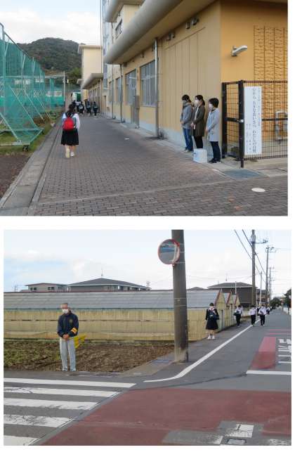 おはようございます。暦の上では昨日が立冬でした。民生委員の皆様、保護者の皆様、職員で登校見守り、挨拶運動、健康観察カード回収です。ありがとうございます。