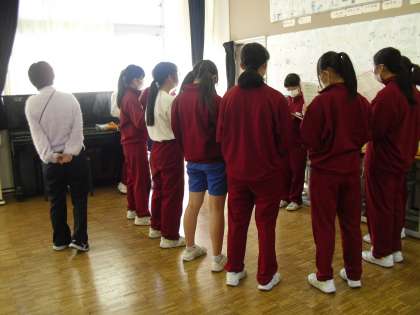 音楽の授業ですが、担任も参加しています。一緒に