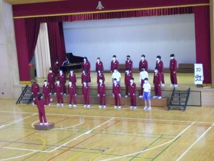 合唱を一部分だけ披露してもらいました。さすが、3年生。迫力ある歌声が響きました。