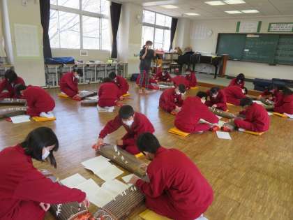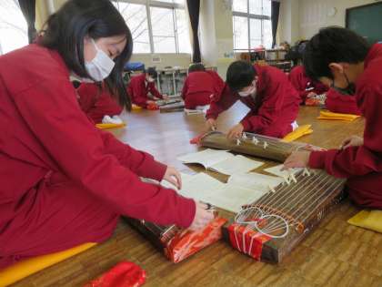「琴」の学習です。さくらさくらの演奏が聞こえてきます。2年生上手です。