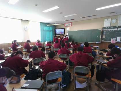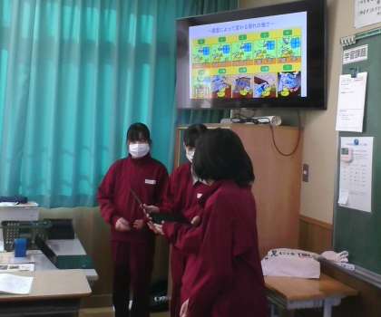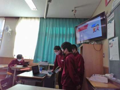 3/2(水)に、地震について各班スライドを作成し、発表しました。中にはレーザーポインター機能を利用したり、クイズを作成したりと工夫を凝らしていました。