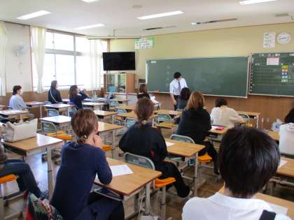 授業参観懇談会 自己紹介や学校でのお子様の生活を話しています。