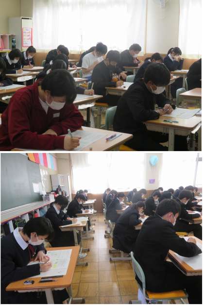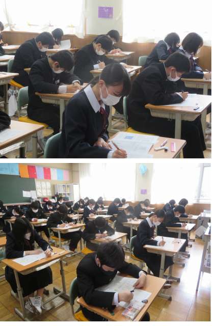 今年度、1学期の中間テストは実施しません。その代わりに2年生の内容を含んだ実力テストを実施しています。理科、英語、国語、社会、数学の順です。頑張ってください。