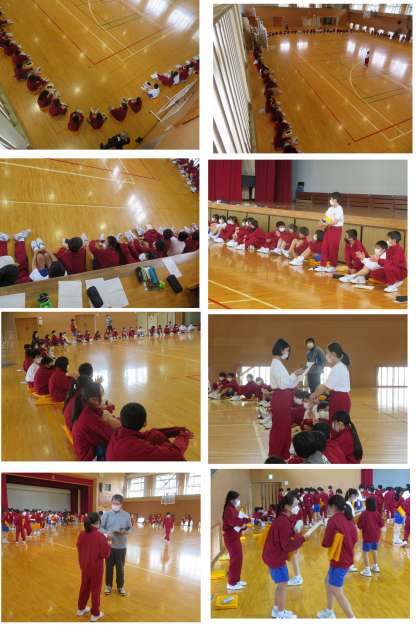 ○2、3年生は実力テストですが、1年生は5時間目体育館で、学年親睦レクを実施しました。2つの小学校から本校に入学して二週間が経過しました。学年委員会が中心となり楽しく人間Bingoゲームなど実施しました。先生方も参加してとても楽しい時間でした。運営企画してくださった皆さんありがとうございました。
