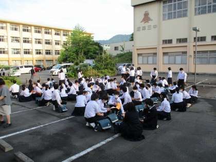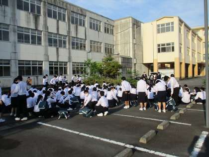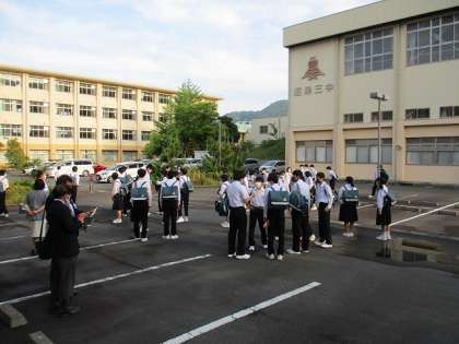 3年ぶりの修学旅行。日頃の行いがいい(?)ためか天候にも恵まれました。予定時間よりも早く集まりはじめました。