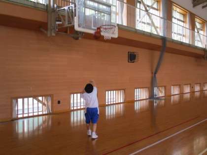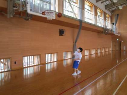 バスケットボールのシュートと練習に黙々と励んでいます。