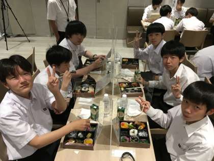 朝食 健康観察カードで確認しました。感染予防のためお弁当ですが、美味しくいただいています。