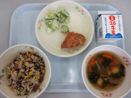 6月15日(水) 今日の給食 公開日 2022/06/15 更新日 2022/06/15 今日の給食 今日のメニューは、 ・コーンとひしせきのピラフ ・チキンのトマト煮 ・コールスローサラダ ・うずら卵と野菜のスープ ・牛乳 です。 いいね(0)