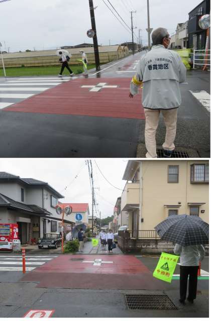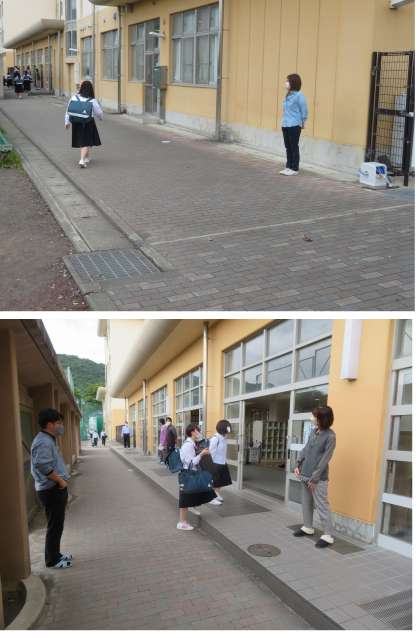 保護者の皆様、民生委員の皆様、職員で登校見守りと挨拶運動です。ありがとうございます。