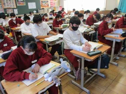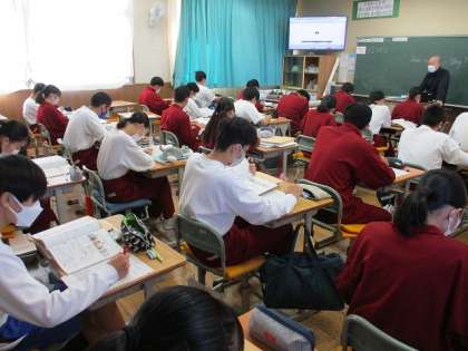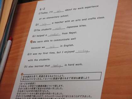 本文を聞き下線部の単語を聞き取り、教科書で確認しています。