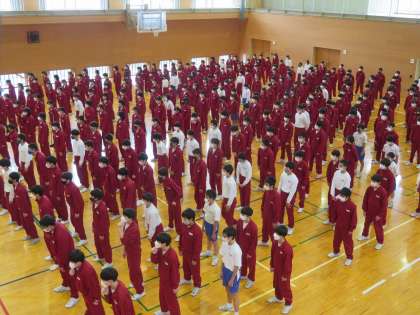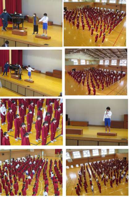 1、2年生が、体育館で合唱の合同練習を実施しています。3年生に対する「感謝」の気持ちが合唱に込められて素晴らしい歌声が聞こえてきます。