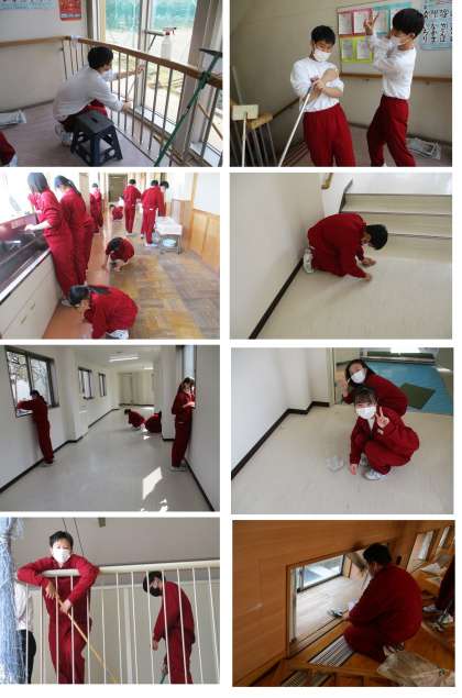 3年間生活した学び舎に感謝。きれいに清掃しています。ありがとう第三中学校。