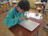 E組の手指の訓練の様子です。それぞれに自分の記録に挑戦し、正確に素早く作業を進...