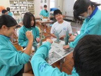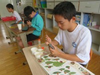 1年B組の美術の時間です。作成した「手」の像に磨きをかけています。いろいろな手...