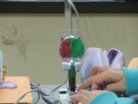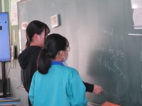 1年A組の理科の時間です。凸レンズをつかって、焦点距離を確認しています。レンズ...