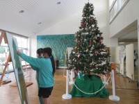 クリスマスツリー設営時に用意していただいたもみの木のパネルにカードが貼り付けら...