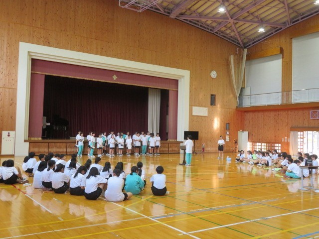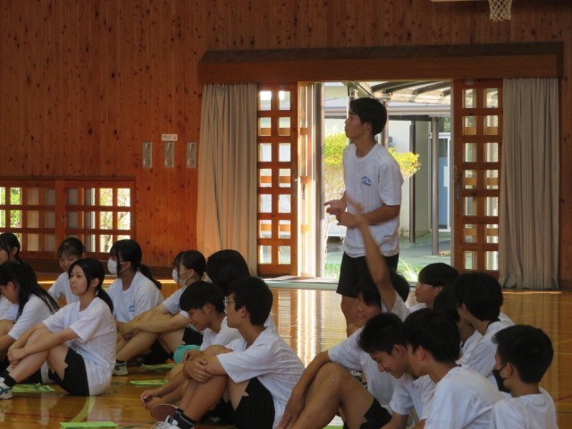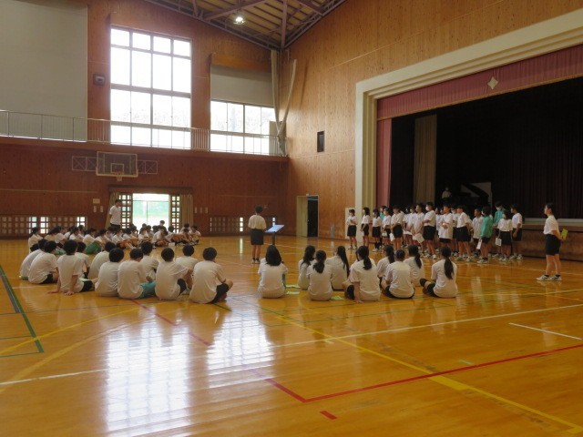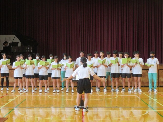 体育館では、3クラスが合唱練習に取り組んでいました。お互いに歌を聴きあい、良いと感じたところ、もっと良くなるところについて意見交換をしていました。ステージの部まで2週間。仕上がりが期待されます。