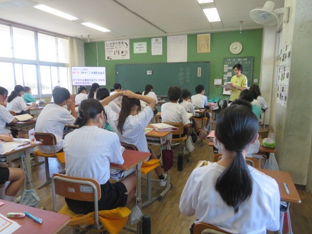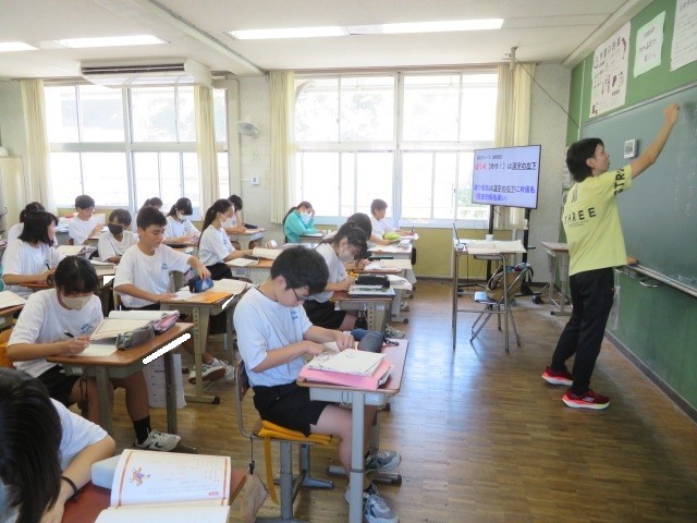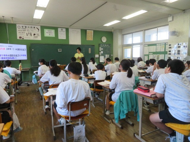 1年B組の国語の時間です。漢文訓読のルールを学習しています。先生から配付された、楽しそうなプリントで訓読をマスターしていきます。