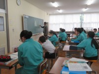 3年B組の美術の時間です。浮世絵を用いた作品の制作に当り、それぞれが決めた名画の特徴を捉えていきます。