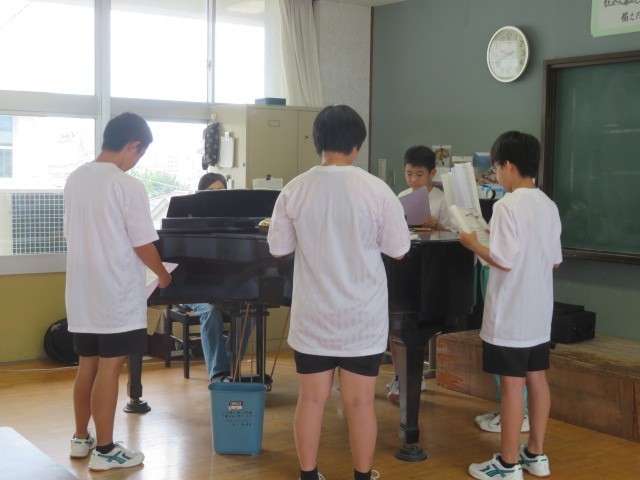 E組の音楽の時間です。清流祭に向けて合唱の練習を頑張っています。